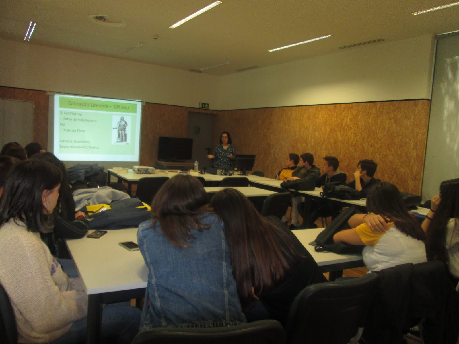 Os alunos do 9º ano participaram numa ação de sensibilização para o programa de Português do ensino secundário. Ficaram a conhecer os autores das metas e outros para leitura autónoma. Porque ler é sempre importante!