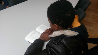Os alunos da turma 608 passaram a hora na biblioteca e escolheram ler a mesma história que os colegas estavam a ler ou a ouvir na sala de aula.