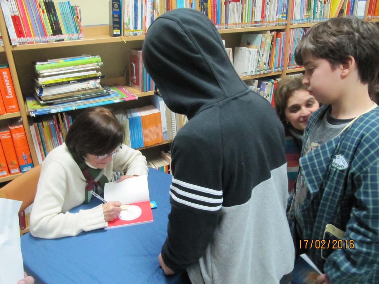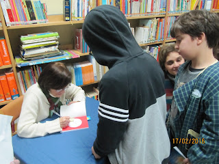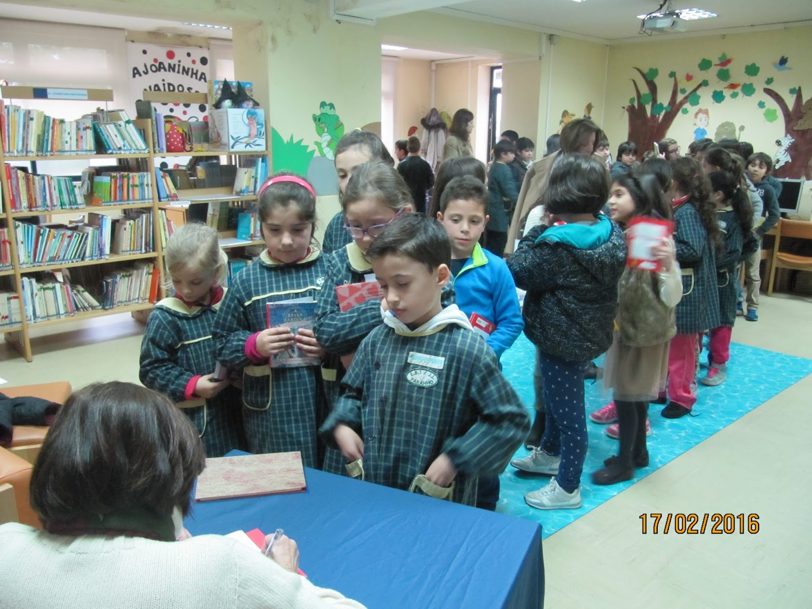 A escritora realizou duas sessões na Escola de Paranho: uma para os alunos do pré-escolar e do 1º ano e outra para os alunos do 2º, 3º e 4º anos. Os alunos tinham muitas perguntas para a escritora e ela respondeu, acrescentando pormenores que deixaram os nossos alunos, sobretudo os do 3º e 4º anos cheios de vontade de ler os livros da coleção "Uma aventura". No final houve longas filas para a tradicional sessão de autógrafos.