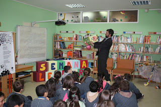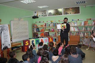 João Rosas, bibliotecário da Casa da Cultura, trouxe-nos uma abada de histórias! E numa antecipação do Dia do Pai, os alunos do 4º ano ouviram "O meu Papá é grande, é forte, mas...", uma história cheia de encanto, em que metaforicamente o autor nos mostra as fragilidades e os medos dos adultos, consumados na paternidade. Obrigada pelos momentos que nos proporcionou.