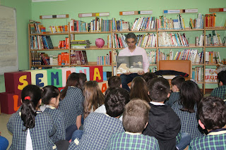 Pela voz de Ângela Barbosa, da Casa da Cultura, os alunos do 3º ano ouviram as histórias "Odeio a Escola" e "Nicomedes o careca". De uma forma divertida, foram abordados dois temas muito pertinentes. Obrigada.