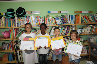 Com o patrocínio da Associação de Pais da Escola, é já habitual fazer a entrega do Prémio aos melhores leitores da Biblioteca. Assim, ontem, na festa da escola, foram entregues os prémios aos alunos:Dinis Fernandes e Leonor Pereira do 1º ano, Rodrigo Cruz do 2º ano, Sara Queiroz e Luís Dias do 3º ano e Beatriz Ferreira do 4º ano.